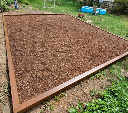 Mulched base installations for clean, functional outdoor spaces, play areas, or landscape features.